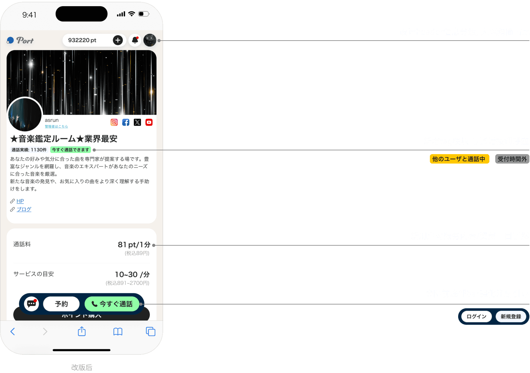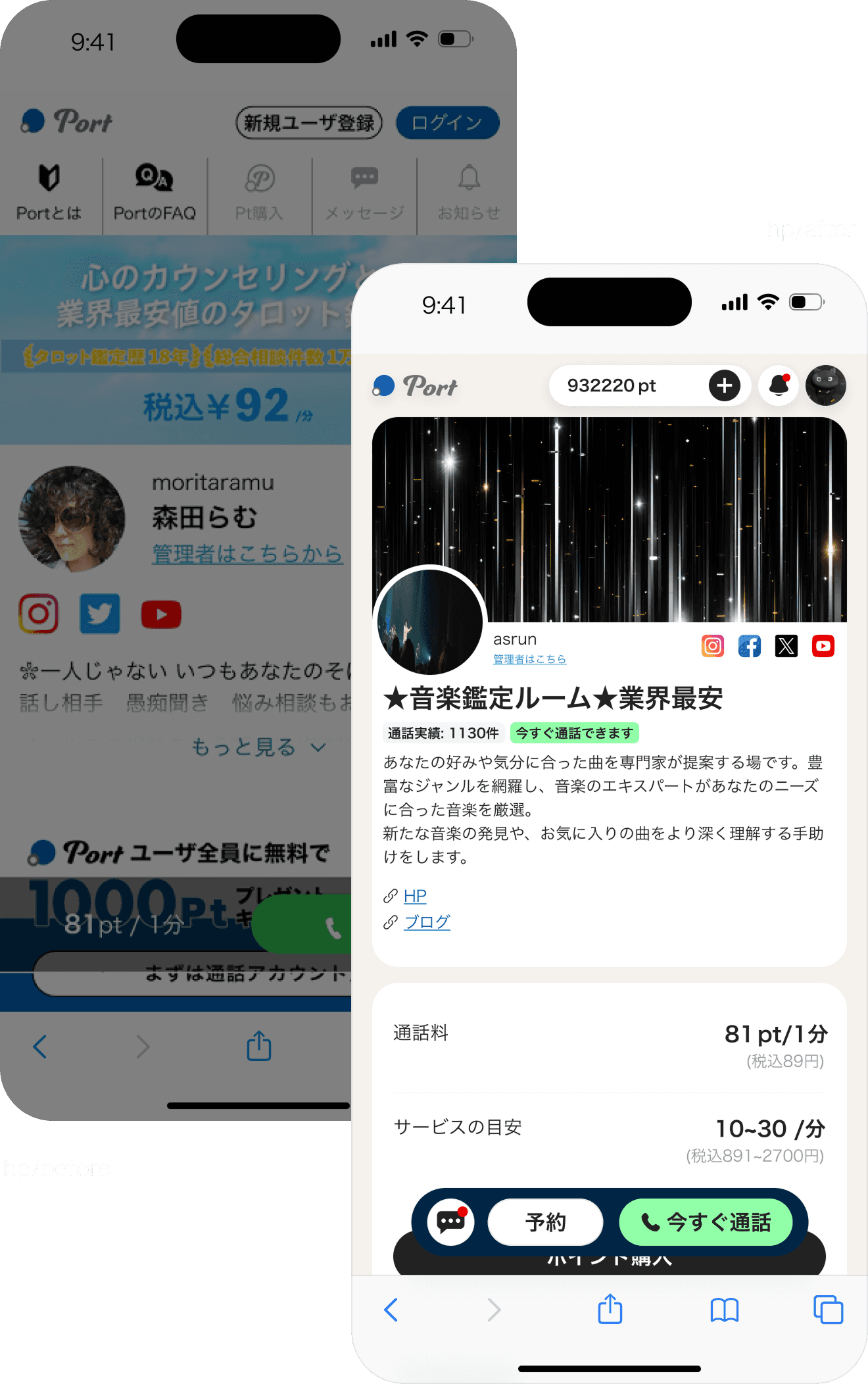 创作者可以在平台上创建自己的主页展示服务内容, 并通过实时通话获得收入。许多 C 端用户往往是通过创作者的 SNS 账号进入 Port, 希望获得更具私人化与情感支持价值的咨询体验。